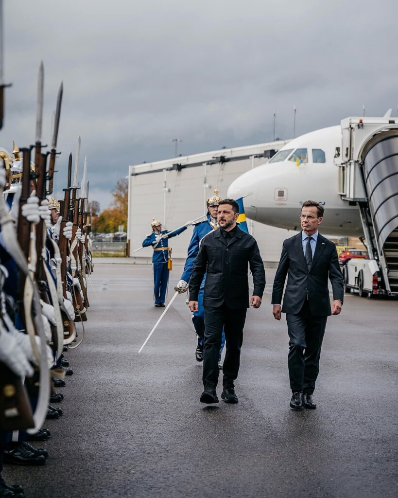 استُقبل زيلينسكي في مطار لينشوبينغ من قبل رئيس الوزراء السويدي أولف كريسترسون، في استقبال حميمي تبادلا فيه التحية والعناق، قبل أن يتوجها لبدء جدول أعمال الاجتماعات الرسمية.