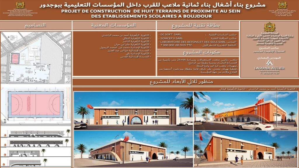 كما تم في هذا اليوم عرض وتقديم مخططات لمشاريع طموحة تستهدف الوسط المدرسي، أبرزها بناء 08 ملاعب رياضية جديدة داخل المؤسسات التعليمية ببوجدور. وتهدف هذه المبادرة إلى تشجيع الممارسة الرياضية بين التلاميذ، وترسيخ ثقافة التنافس الإيجابي، وتوفير فضاءات آمنة ومجهزة للأنشطة البدنية داخل المؤسسات.